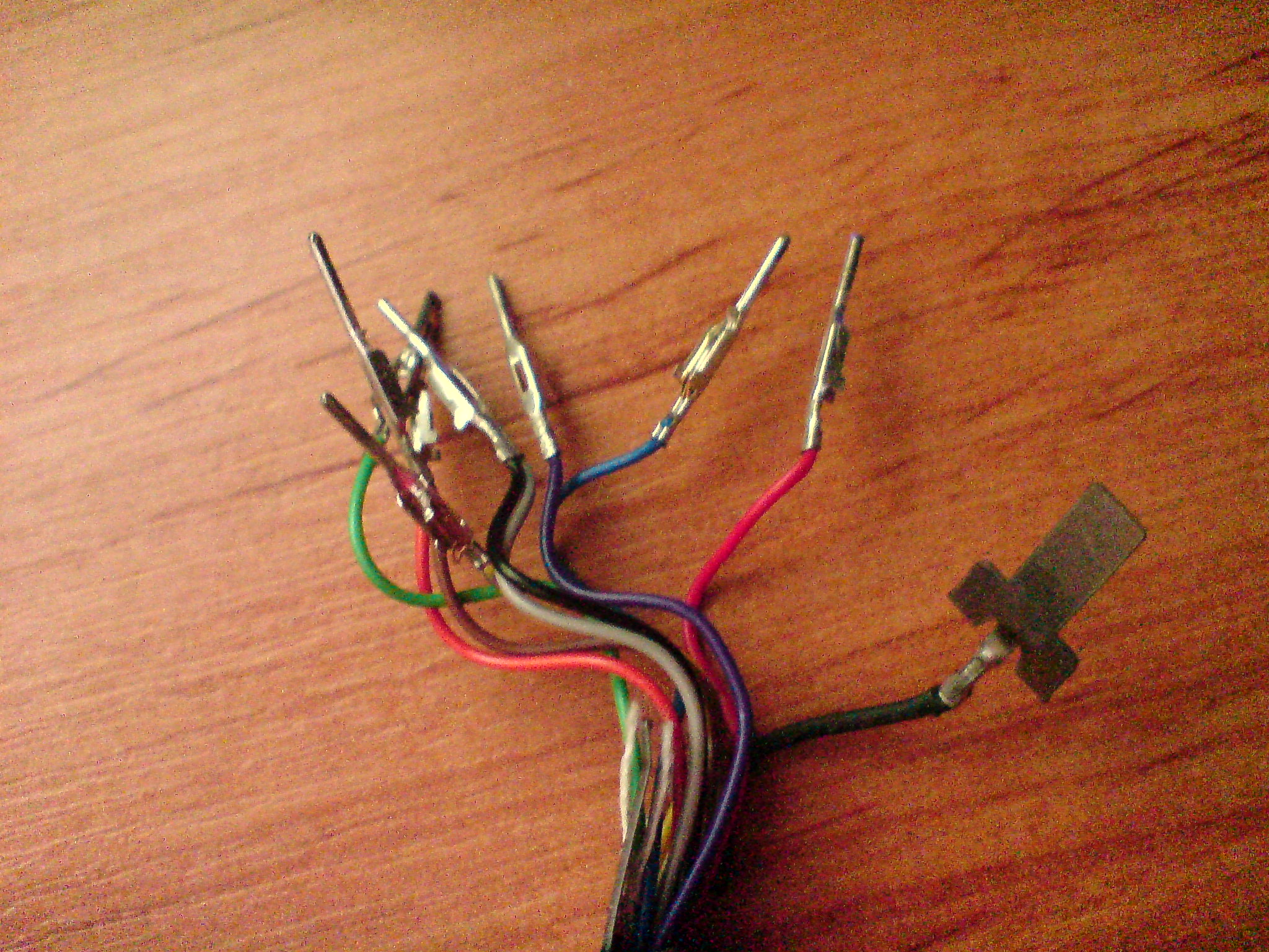 tak to wygląda...kolory kabli to czerwony, niebieski, żółty, pomarańczowy, zielony, brązowy, fioletowy i czarny razem z szarym w jednym pinie. Jest tez jakaś blaszka(widać na zdjęciu) i nie wiem do czego to. Dodam ze pad to dual shock 1.