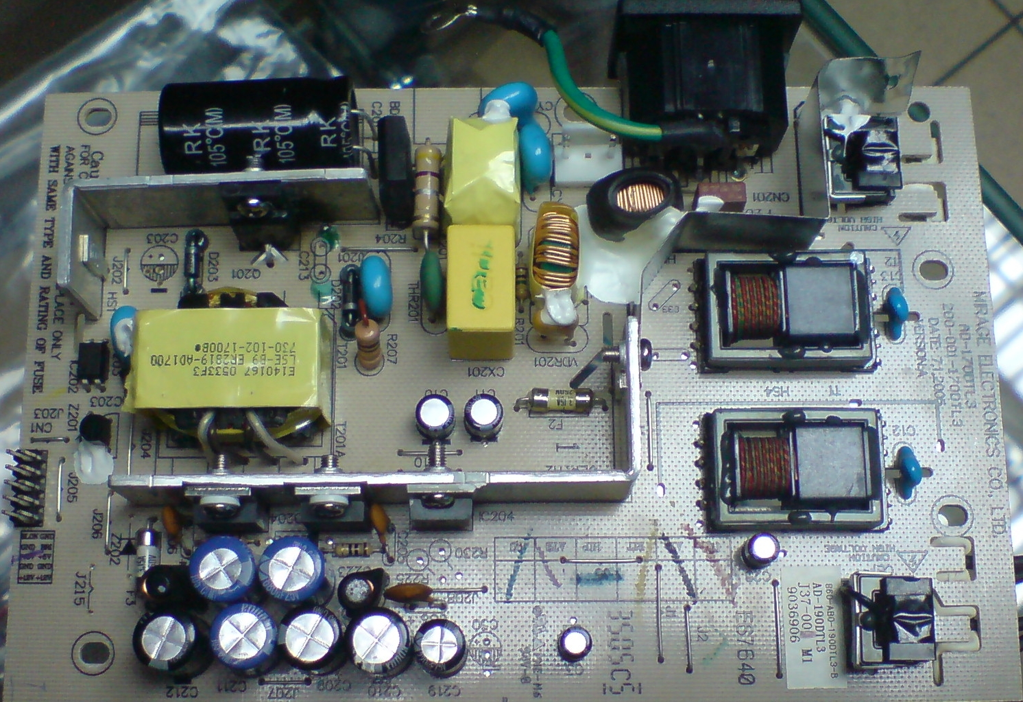 Monitor jak w temacie -niestety troszkę "rozgrzebany". Uszkodzony zasilacz: IC201 - odpryśnięty i brak danych na jego temat, brak C203, brak C213, nieznana wartość R202.
