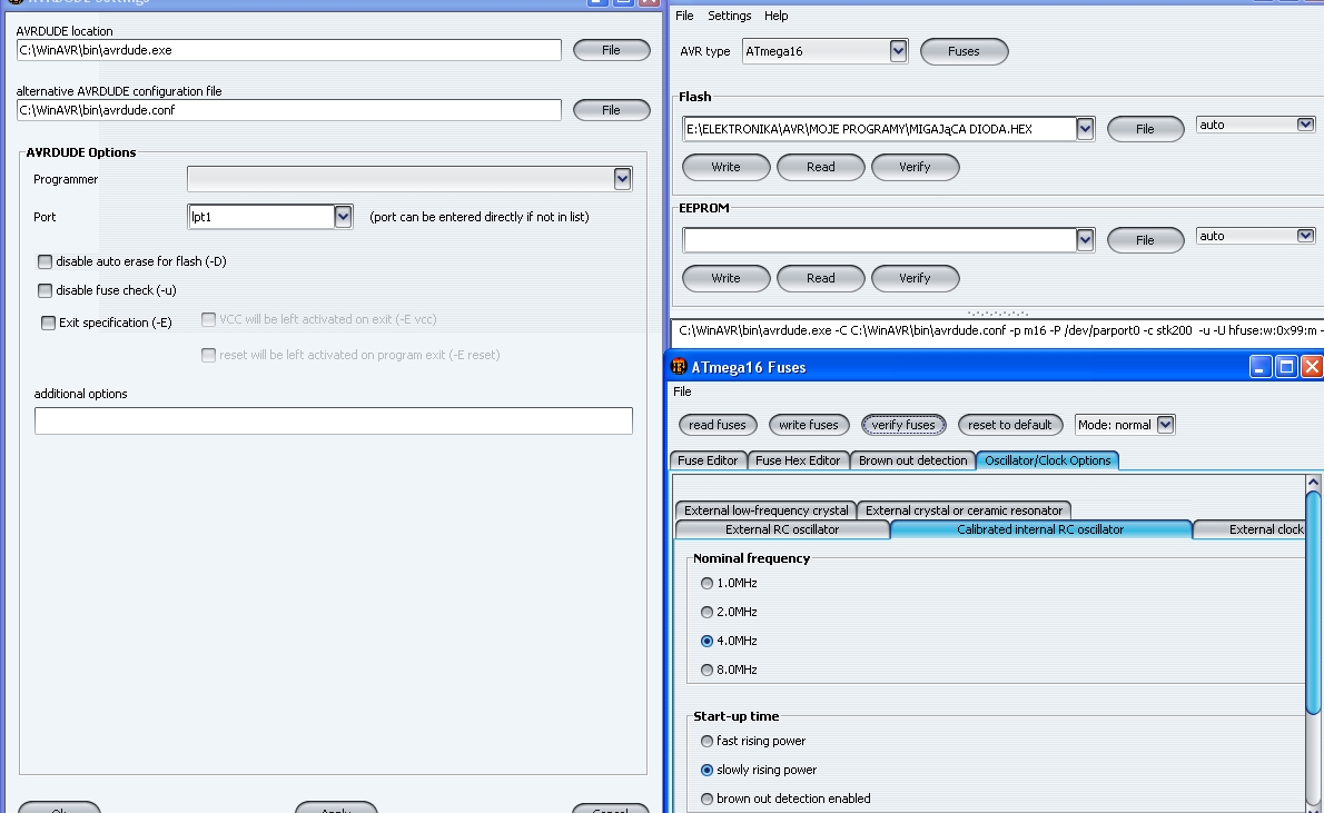 Posiadam atmegę16 smd. Z tego co wiem fabrycznie ustawiona jest na wew rc 1MHz. Chcę wrzucić już istneiejący program na nią, ale muszę tylko zmienić z 1MHz na 4MHz nic więcej niby proste, ale nie wiem konkretnie jak to DOBRZE zrobić na avrdude-gui. Próbowałem na 2 atmegach korzystając z gotowych ustawień podanych na wielu stronach i forach miedzy innymi na http://www.engbedded.com/fusecalc/ i efetk był taki, że albo nic kompletnie się nie działo albo atmega szalała i w konsekwencji nastąpiła blokada. Za dużo ustawień i nie wiadomo co z czym się je. Teraz moje pytanie czy ktoś ma gotowe ustawienia z avrdude-qui które na 100% nie zablokują procka i które zmienią tylko i wyłącznie wew rc 1MHz na 4MHz?