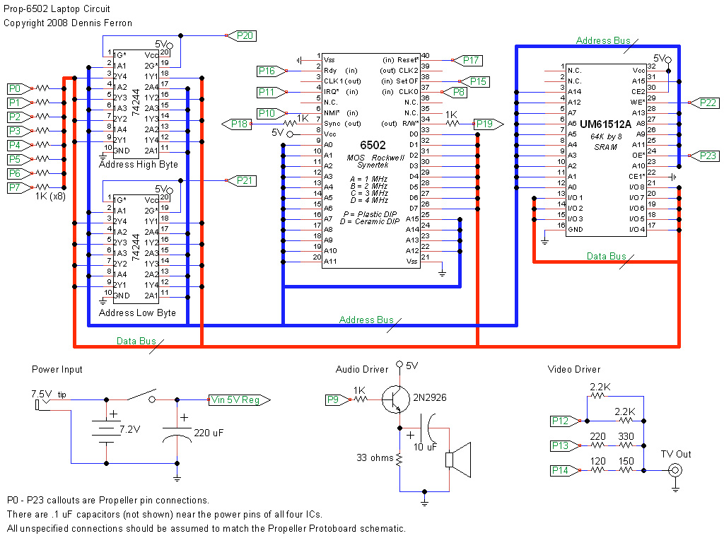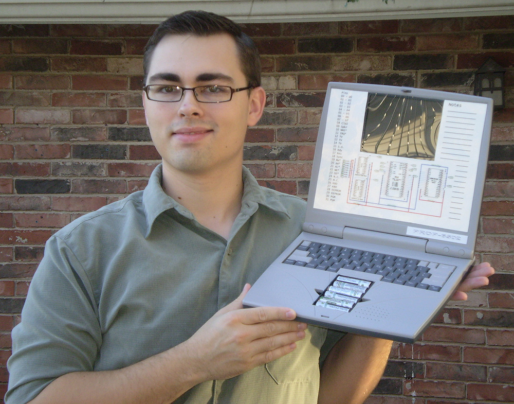Propeller jest mikrokontrolerem, składającym się z aż 8 oddzielnych procesorów, może pracować z częstotliwością do 80Mhz. W tym projekcie wykorzystywany jest jako chipset do obsługi wszystkich portów we/wy koprocesora 6502, a także uruchamiany jest na nim zintegrowany debugger, dający możliwość programowania komputera. Laptop posiada 64kB statycznej pamięci RAM. Jako wyświetlacz posłużył ekran LCD z odtwarzacza DVD, obudowa i klawiatura pozyskane zostały z laptopa zabawki. Projekt został wyróżniony w konkursie organizowanym przez firmę Parallax. Cena ich niezwykłego mikrokontrolera wynosi $8.
