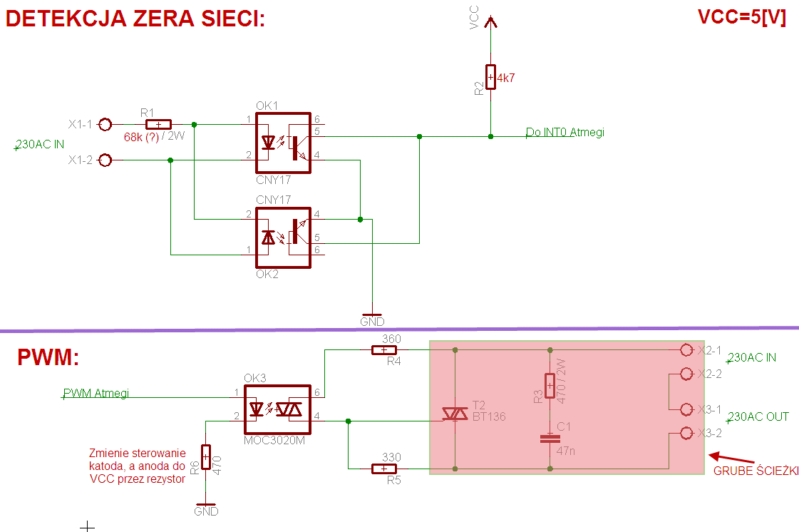 od kilku dni siedzę i czytam na temat zupełnie mi nowy - układy regulacji przy napięciu sieciowym 230V. Próbuję zrealizować układ, który za pomocą PWM będzie regulował (na początek) jasność halogenu 500 WATT. Posiedziałem, poszukałem, posklejałem taki schemat: