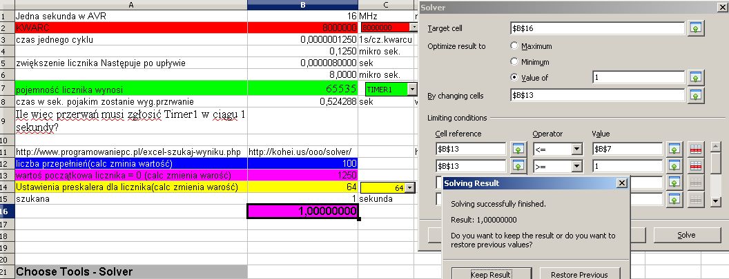 również odsyłam by zobaczyć program Kalkulator AVR który nie posiada możliwości automatycznego rozwiązania "JEDNEJ SEKUNDY W AVR" http://www.edw.com.pl/index.php?module=ContentExpress&file=index&func=display&ceid=69&meid=22