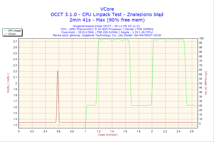 Problem polega na tym, że OCCT przerywa testy gdyż uznaje, że wykrył błąd.