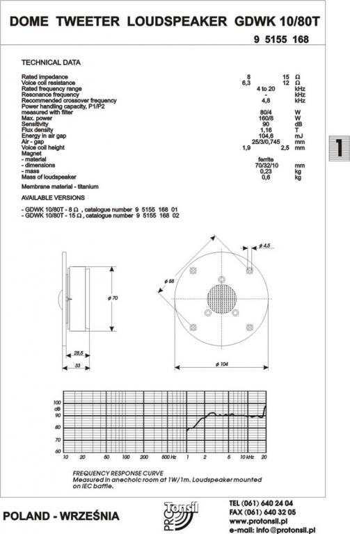 Na pewno trzeba by coś pokombinować ze zwrotnicą, ale nie jestem w stanie nigdzie znaleźć porządnego opisu GDN 17/40. Najchętniej wymieniłbym też tweetery np na GDWK 10/80/19 (takie jak są w kolumnach Maestro S), ale to nadal nie załatwia to środka i basów.