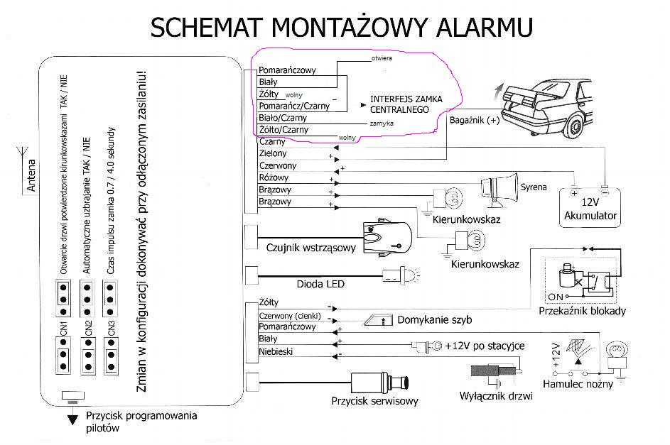 Witam! Mam prośbę o sprawdzenie co do poprawności podłączenia alarmu lion rtx as1 do centralnego zamka elektrycznego, oto alarm: