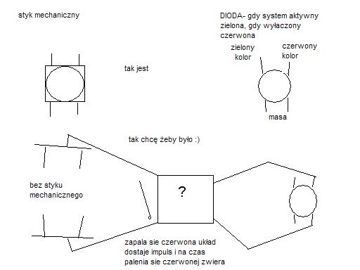 tylko co zastosować i jak to podłączyć żeby gdy dioda zmienia kolor z zielonego na czerwony układzik zwierał automatycznie ścieżkę zamiast samemu naciskać przycisk. Z górki dziękuję za odpowiedzi i proszę łopatologicznie gdyż jestem początkujący pozdrawiam.