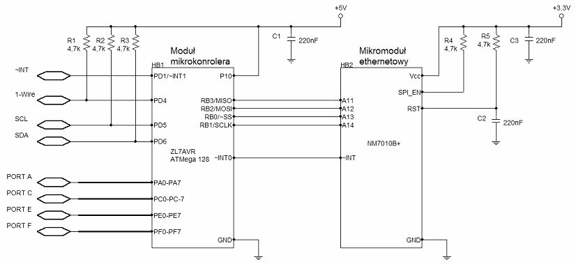 Podłączyłem Moduł NM7010B+ i Atm16 jak na schemacie (komunikacja ma być po SPI).