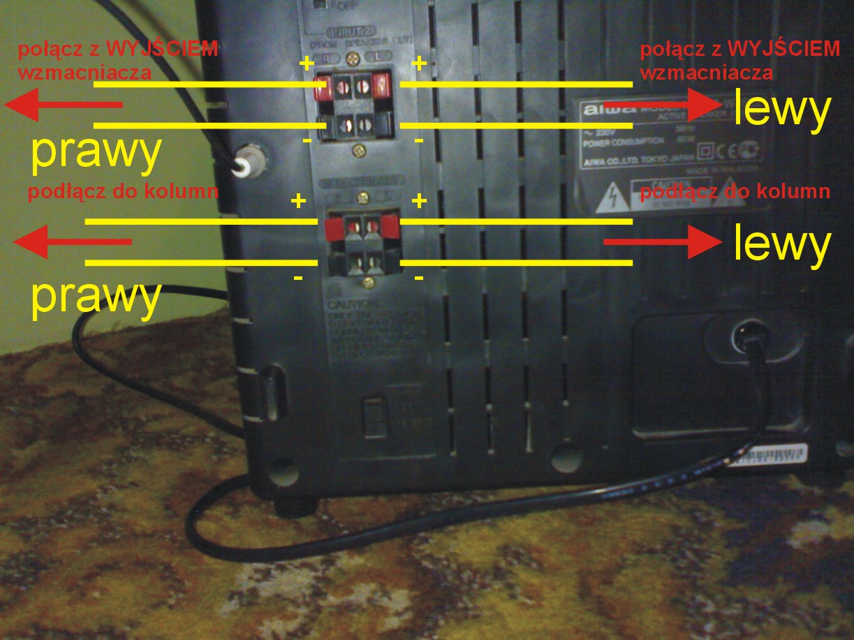 Witam mam subwoofer Aiwa TS-W45 i teraz tak , podłączyłem go do wieży trochę starej patrząc na dzisiejsze (Sherion) i nie ma w niej wejścia na subwoofera , no to podłączyłem do wejścia na słuchawki , gra ładnie , ale co z tego jak słychać sam subwoofer . Jak zrobić żeby reszta głośników grała razem z subwooferem ?? Ten subwoofer ma jeszcze wejścia na głośniki ale jak do nich wpinam to nie działają , (subwoofer jest ze wzmacniaczem i zasilany jest prądem ) proszę o pomoc