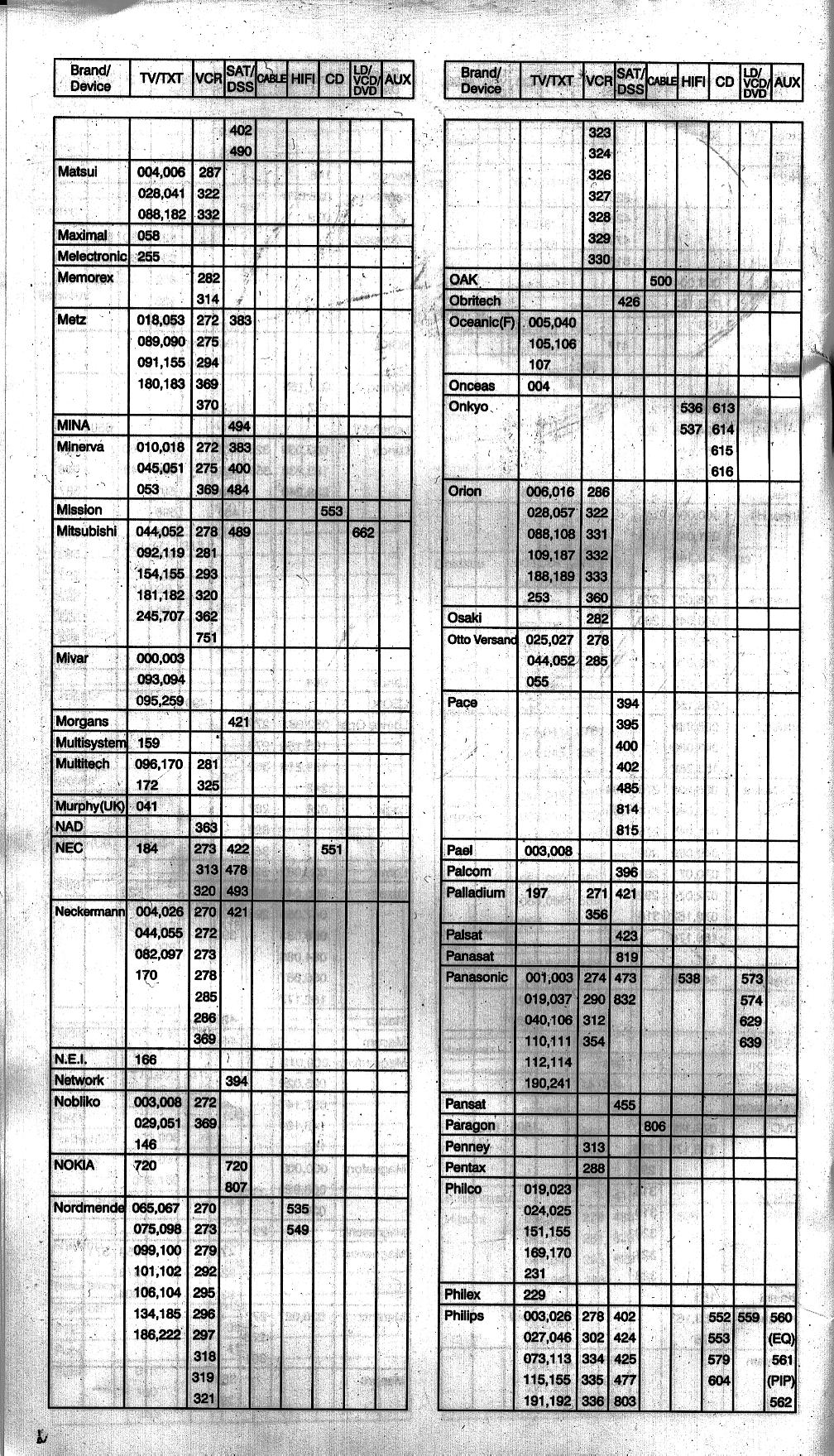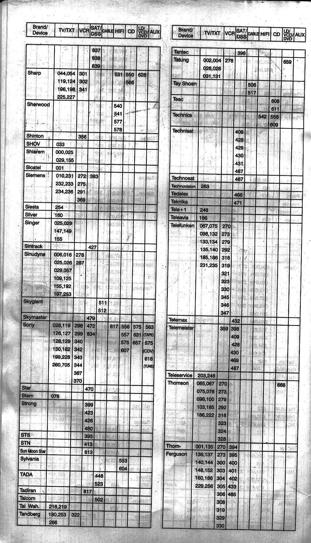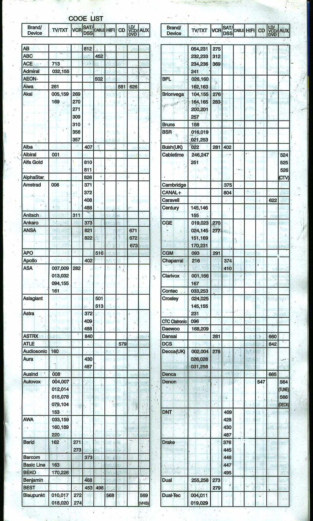#1 740013 13 Lip 2004 10:04 walbed walbed Poziom 12 #1 740013 13 Lip 2004 10:04 Czy ktoś posiada tabelę kodów do pilota uniwersalnego KEDISON KE-3 ? pozdrawiam Waldek B.