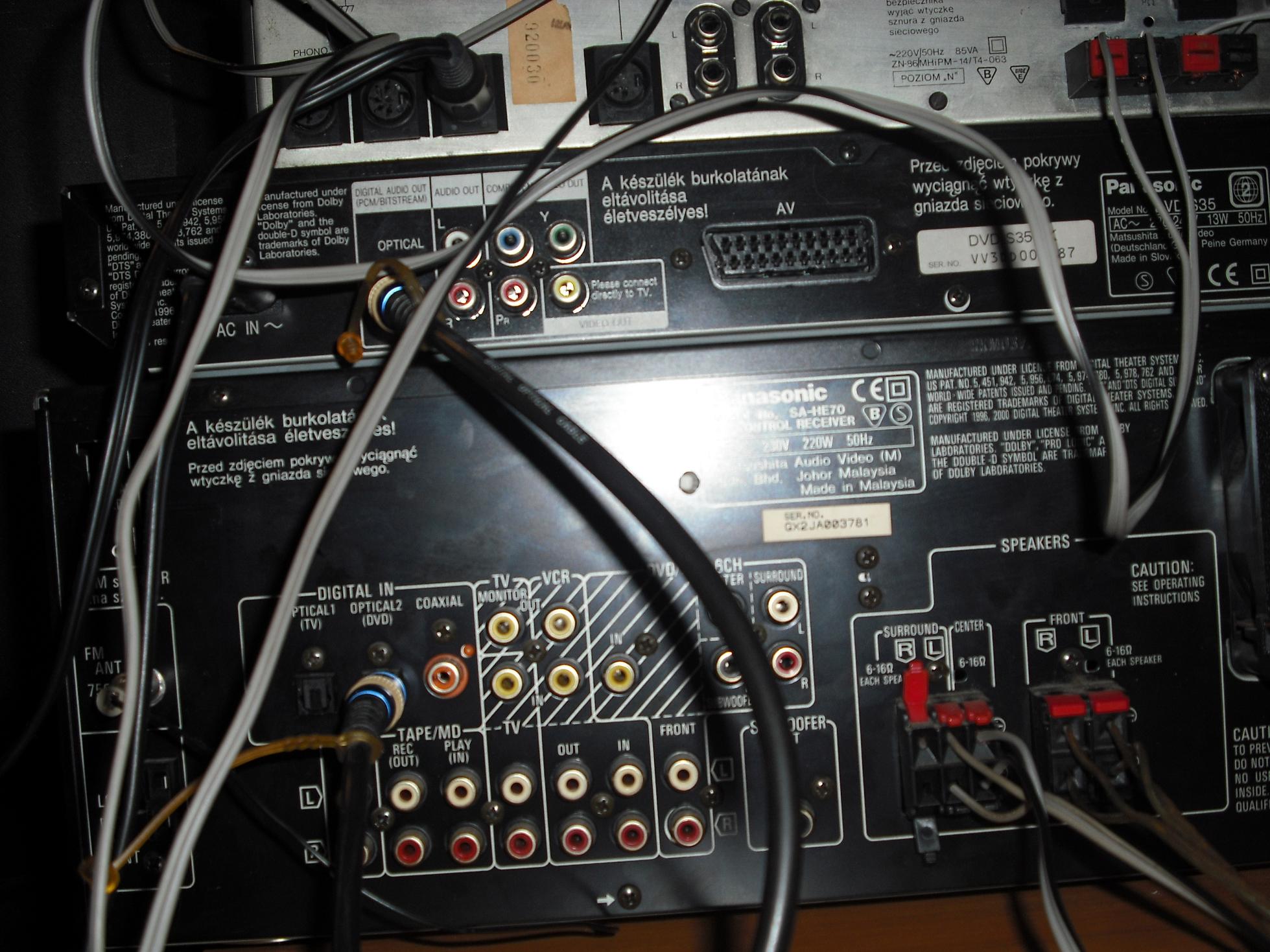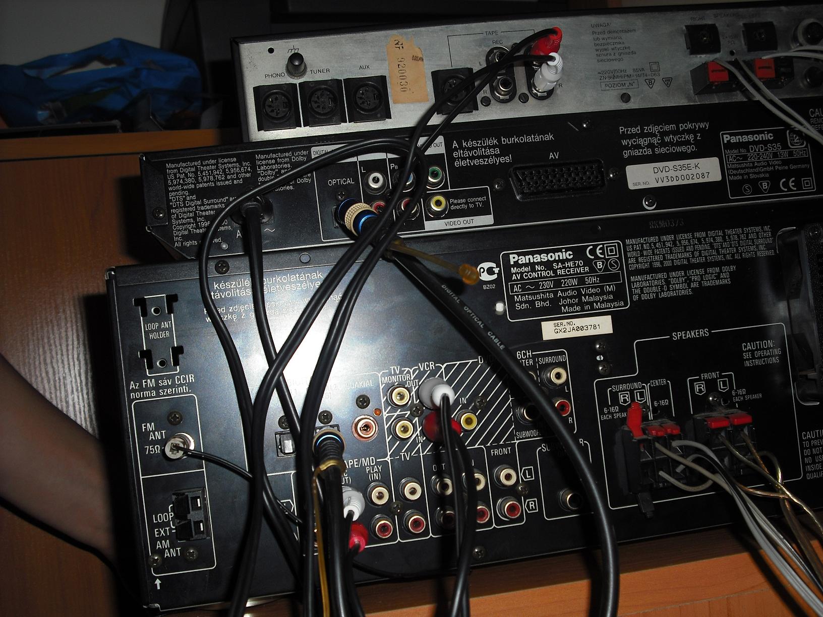 Ponizej zdjecia z przodu i z tylu wzmacniaczy (pomiedzy wzmacniaczami dvd ale to pomincie)