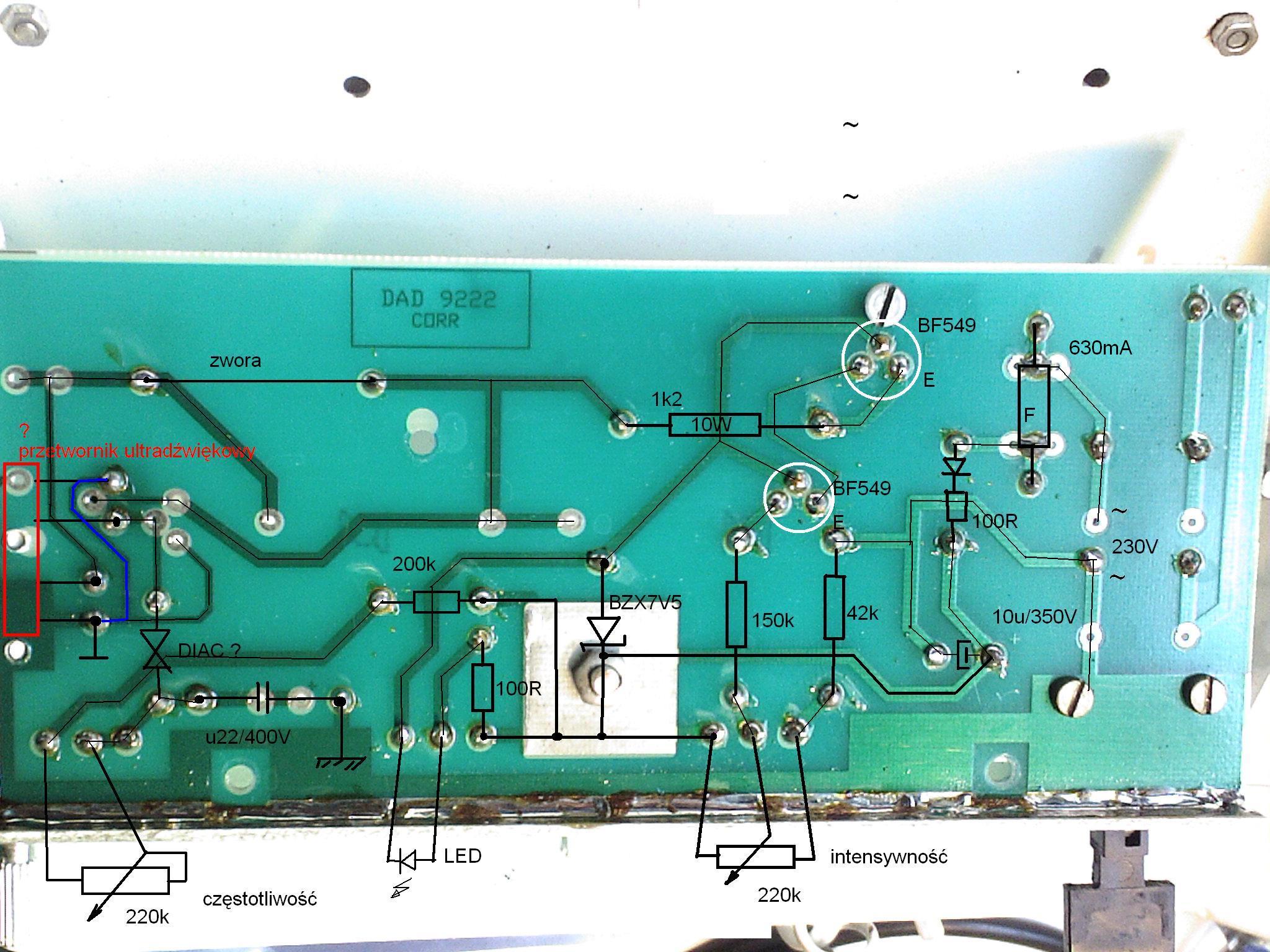 Elementy bierne i czynne na płycie sprawne a na wyjściu brak jakichkolwiek drgań - tylko napięcie stałe ok. 175V na kondensatorze 10u/350V jest 318V.