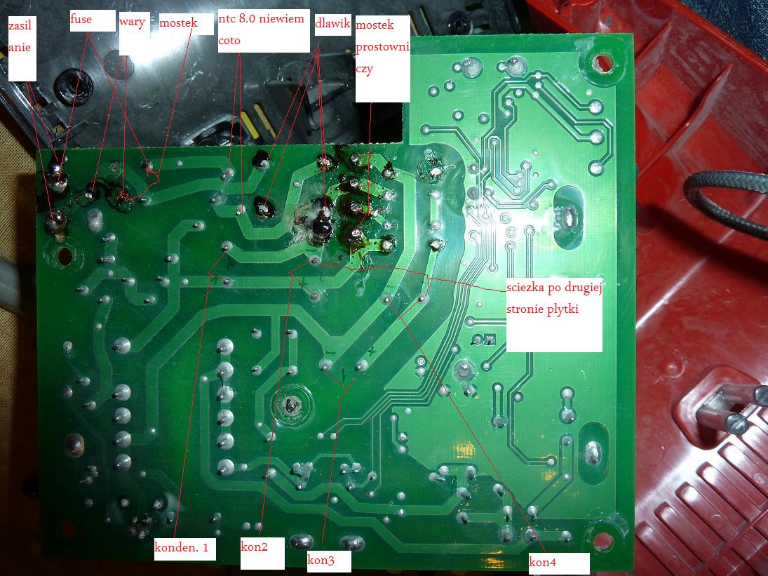 Witam mam pytanko jak przerobić ładowarkę Milwaukee M18 z USA na 220V. Wiem, ze to jest możliwe oraz wiem tez ze są tam 4 kondensatory 200V, ale niema konieczności ich wymiany. Dostałem zdjęcia takiej ładowarki po przeróbce, ale nie jestem pewien co zostało wymienione. Proszę o pomoc wiem, ze został usunięty warystor, zmieniony przewód zasilania, bezpiecznik, i ktoś zrobił mostek rezystorów, ale po tylko takiej przeróbce ładowarka pali bezpiecznik już po 2 sekundach. Jaka jeszcze modyfikacja jest potrzebna by dokończyć taka przeróbkę. Wszystko porównałem do ładowarki na 110V i nie widzę czy coś było wymienione...