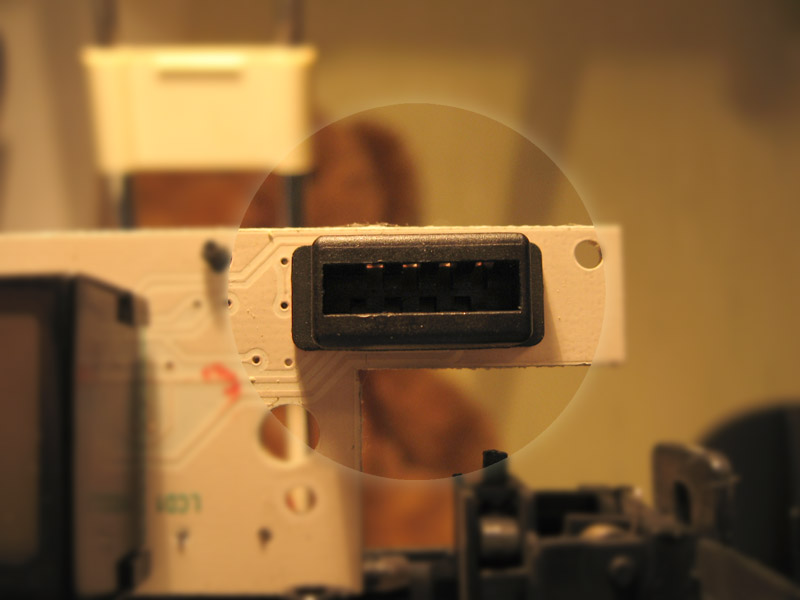 Na pierwszym zdjęciu widać uszkodzone 'gniazdo', 8 pinowe/8 blaszek w środku. Jedna z blaszek wyłamała się całkowicie, pozostałe prawdopodobnie również ponieważ nie sprężynują tak jak powinny, nie zapewniając styku z blaszkami przedniego panelu radia.