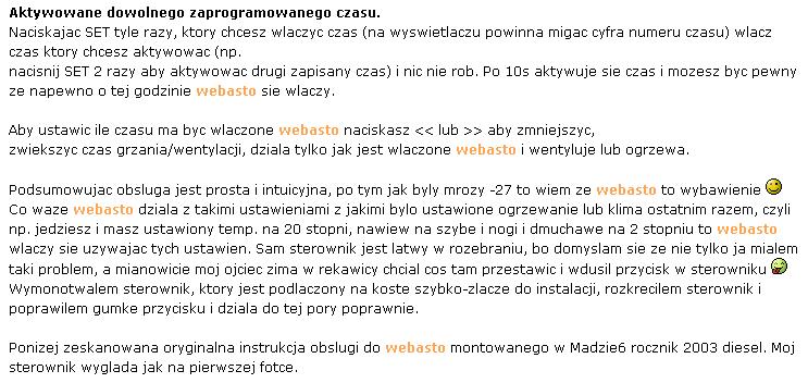 Mam Mazde 6 z webasto, ale nie wiem za bardzo jak to urządzonko programować tzn uruchamiać na daną godz, a wiem, że jest taka możliwość.