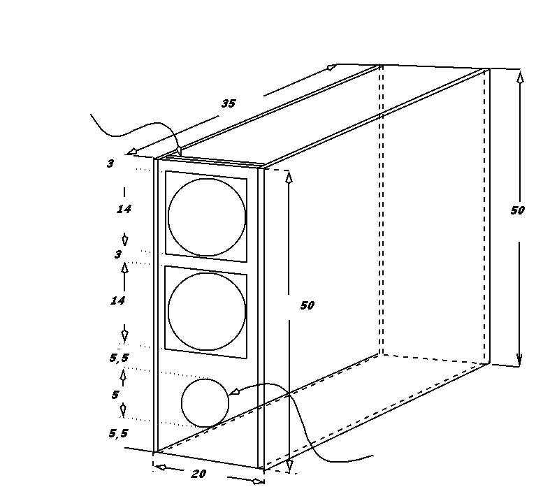 Druga sprawa: poczytaj, we własnym, dobrze pojętym interesie o obudowach bas - refleks. Je należy zaprojektować do konkretnego głośnika (głośników). Owszem, jak zrobisz "na pałę" i "na oko", to też zagrają, tak, jak goły głośnik podpięty do wzmacniacza też zagra, tylko gdzie będziesz miał bas? Kolumny robi się właśnie po to, żeby głośnik mógł z siebie wypromieniować niskie dźwięki odpowiedniej jakości - i o to jest 98% walki przy projektowaniu i budowaniu kolumn.