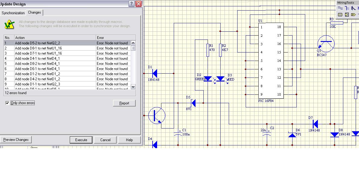 #2 7606226 28 Sty 2010 17:06 Konto nie istnieje Konto nie istnieje Konto nie istnieje #2 7606226 28 Sty 2010 17:06 Widać że problem dotyczy diod. Prawdopodobnie masz źle przypisane nazwy wyprowadzeń (designator ) w sch i pcb ( nie nazwa pinu). Np w sch masz des. nazwane A,K a w PCB masz 1,2 . I tu program nie może sobie poradzić.