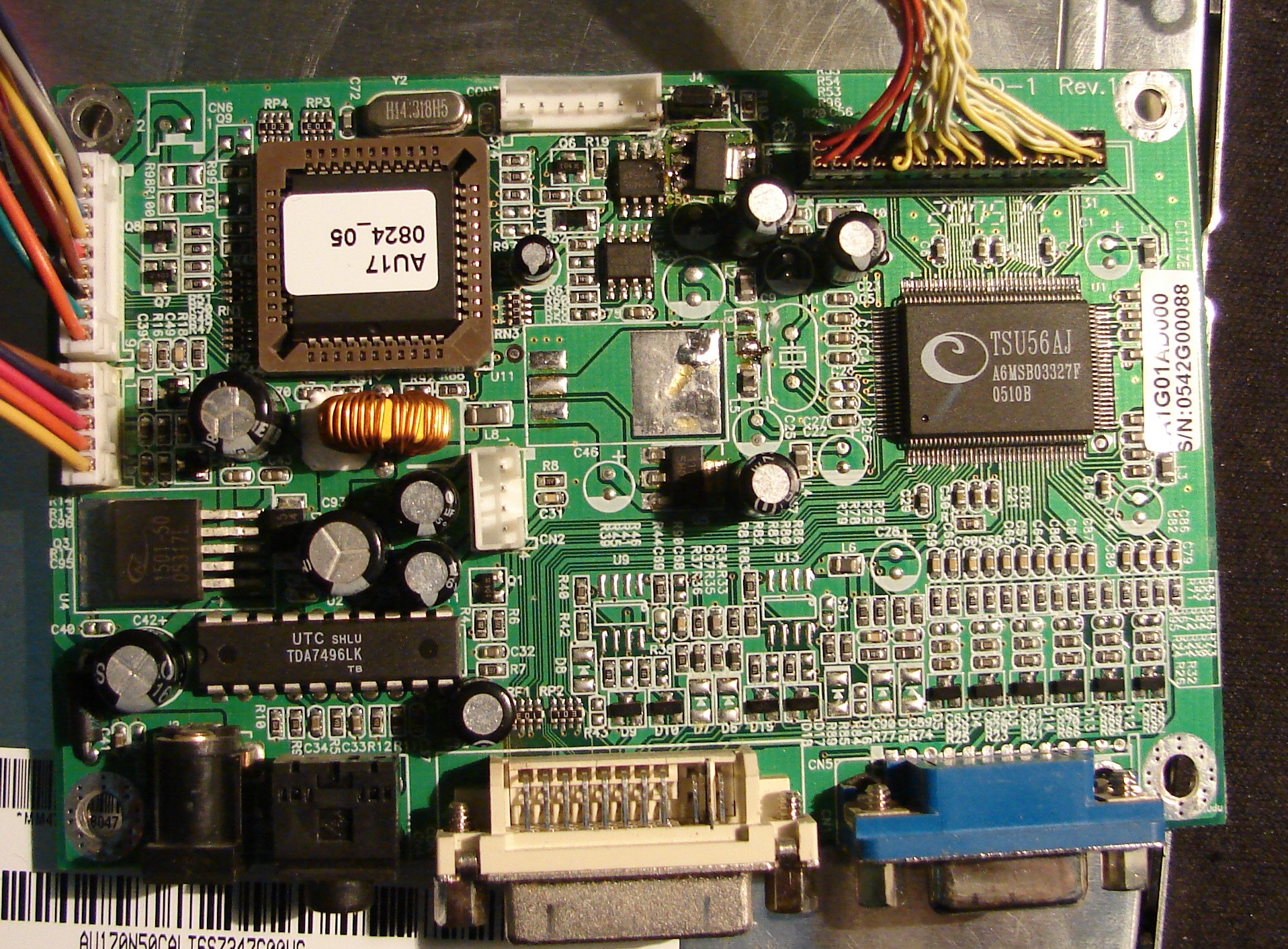 Na monitorku LCD 17" obraz kontrolny jest idealny natomiast po przyłączeniu sygnału z komputera na gniazdo D-BUS ledwie widoczny. Poprzerywany pionowymi i poziomymi liniami w różnych kolorach. Po złączu sygnałowym DVI jest prawie dobrze. Widać tylko lekkie drżenie pojedyńczych linii poziomych. Matrycę podmieniałem i jest ten sam objaw. Zamieszczam zdjęcie płyty elektronicznej. Proszę o sugestię.