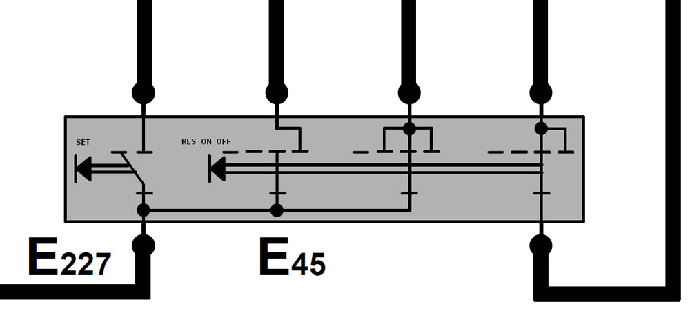 No i tu to co jasne się kończy ponieważ zostaje pozycja zwór 2 którą przełącznik osiąga tylko przez chwilę podczas przechodzenie z ON w OFF. Zauważ że taka budowa przełącznika daje tylko to iż tempomat wyłączany i włączany jest w odpowiedniej kolejności styków. Podczas wyłączania przejście z ON w OFF czyli z pozycji 3 w 1 powoduje że przechodząc przez 2 najpierw rozłącza się zworka skrajna z prawej strony ale środkowa zostaje jeszcze zwarta dopiero pełne przesunięcie przełącznika powoduje też rozwarcie i zworki środkowej. No i analogicznie podczas włączania tempomatu pierwsza załącza się zworka środkowa osiągając podczas przesuwania położenie 2 a ta prawa zwiera się dopiero po pełnym przesunięciu przełącznika.
