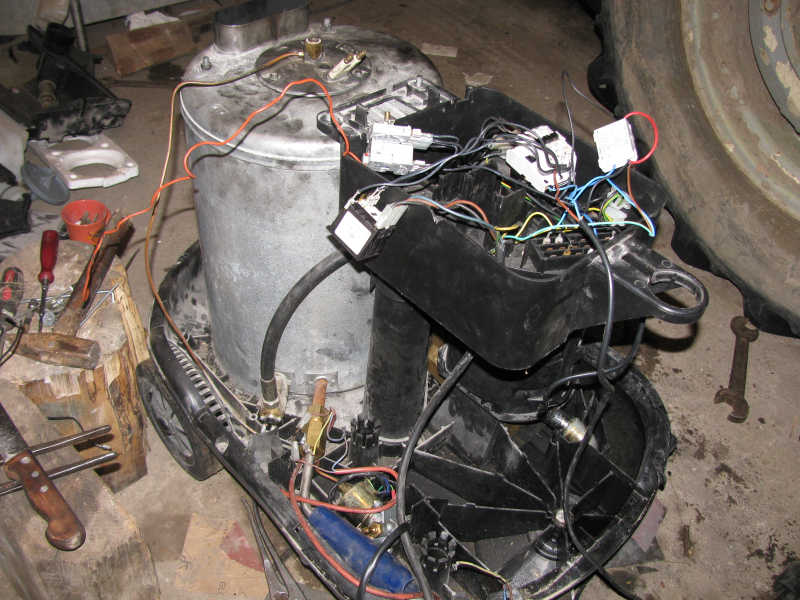 Witam koledzy, dostałem myjkę ciśnieniową Alto jest to dos duza myjka, posiada podgrzewanie wody i jest to realizowane przez trafo WN z elektrodami oraz wtrysk ropy. Ja dostałęm tę oto myjke w całkowitej rozsypce kos zaczął przy niej robic jednak nic z tego nie wyszło, ponizej zamieszczam zdjecia i prosze o pomoc jak to wszystko ze soba podłaczyć.Postaram się wszytko opisac aby ułatwić: