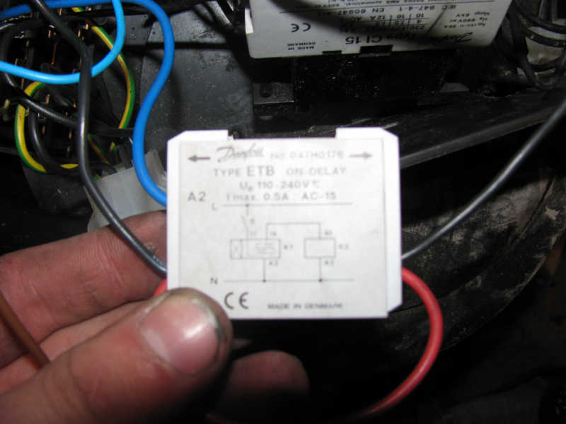 Pózniej jak widac mamy cos podobnego do przekażnika czasowego ponieważ da sie na nim ustawiać czas od 0,5 do 20s dziwi mnie to, że ten czerwony kabel poprowadzony jest z jednego zestyku do drugiego, tak ma byc? Pozostały niebieski prowadzi do listwy czegos podobnego do rozdzielni faz: