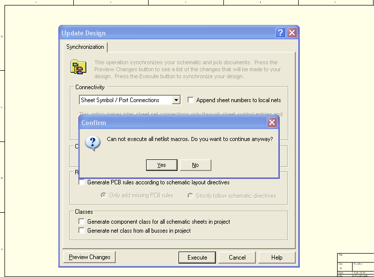 Witam. Podczas synchronizacji schematu i elementów płytki, po wydaniu komendy EXECUTE pojawia się komunikat o następującej treści ( patrz foto). Z mojej znajomości j.angielskiego wynika, że komunikat ten informuje o tym, że doszło do naruszenia dostępu adresu 0DF9C4B0 w module biblioteki ADVPCB.DLL.
