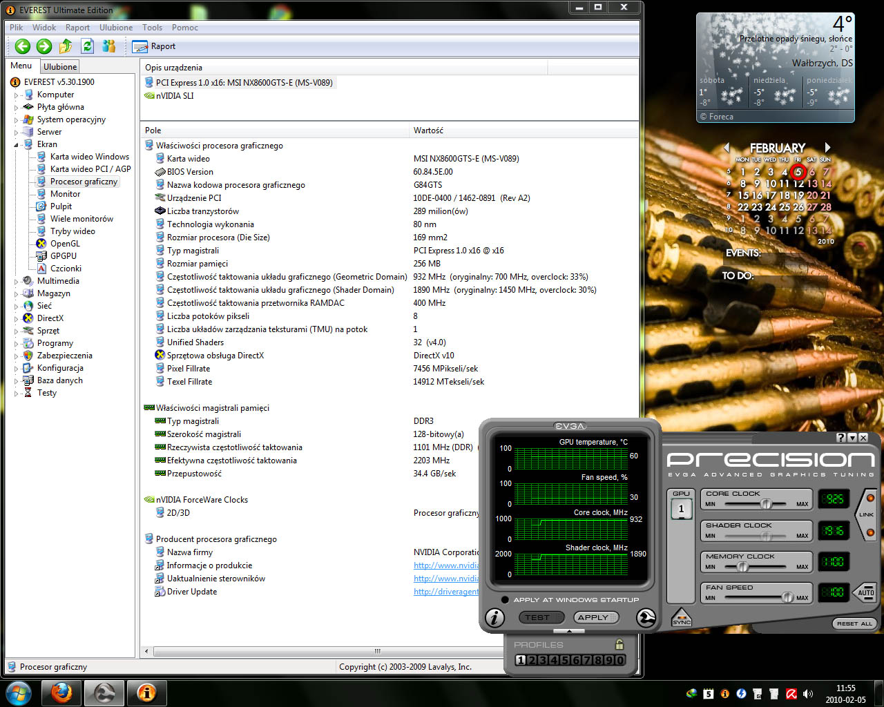 W evereście jest podane, że oryginalnie było GPU/Mem 700/1100Mhz(2,2Ghz DDR) ale to po mojej modyfikacji firmware karty. Tak na prawdę jak kupiłem tą kartę to było GPU/shader/Mem 675/1450/1000Mhz (2Ghz DDR).