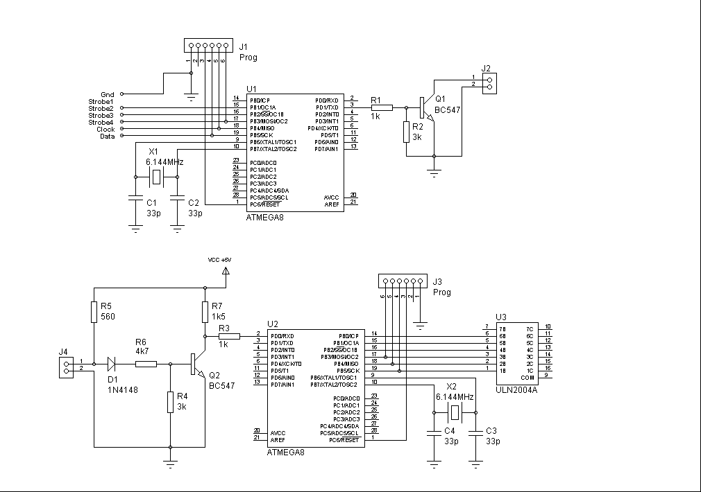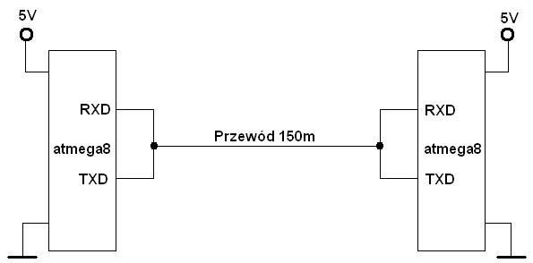 Komunikacja odbywa się między dwoma mikroprocesorami atmega8, tak więc obowiązuje standard TTL.