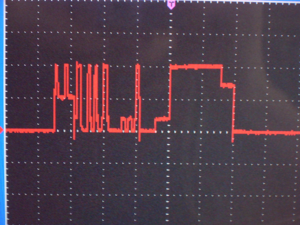 Oto sygnał po podpięciu jednego przewodu (wykorzystanie jednej żyły z 8 - bez ekranu):