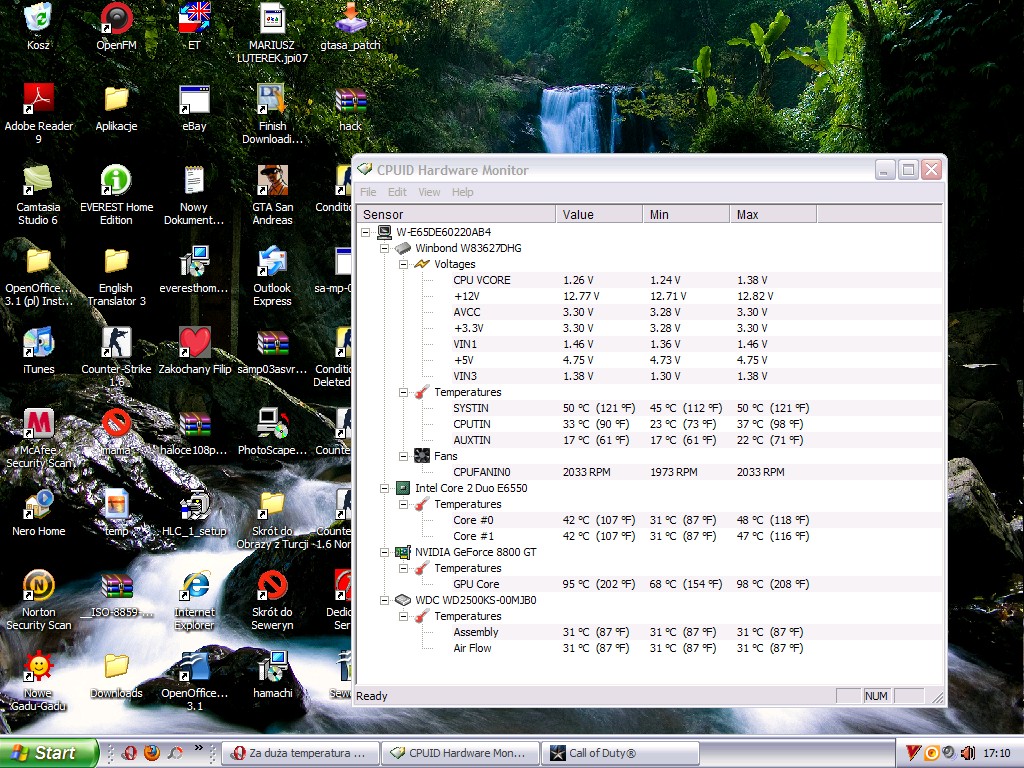To jest jak mi normalnie komp chodzi jak wlanczam np call of duty to dochodzi do 90 stopni i sie wylacza. Czyscilem witaraki mam dwa +1 z krata graficzna. Moj kolega mowi ze jak gra to ma gora 40 stopni. Co moge zrobić??