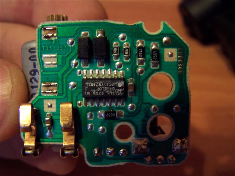 Podczas pracy tłok przesuwa główkę pewnego elementu (być może jest to potencjometr, aczkolwiek mój multimetr na to nie wskazywał). Scalak jest tam zapewne po to, by odcinać zasilanie silnika w położeniach krańcowych.