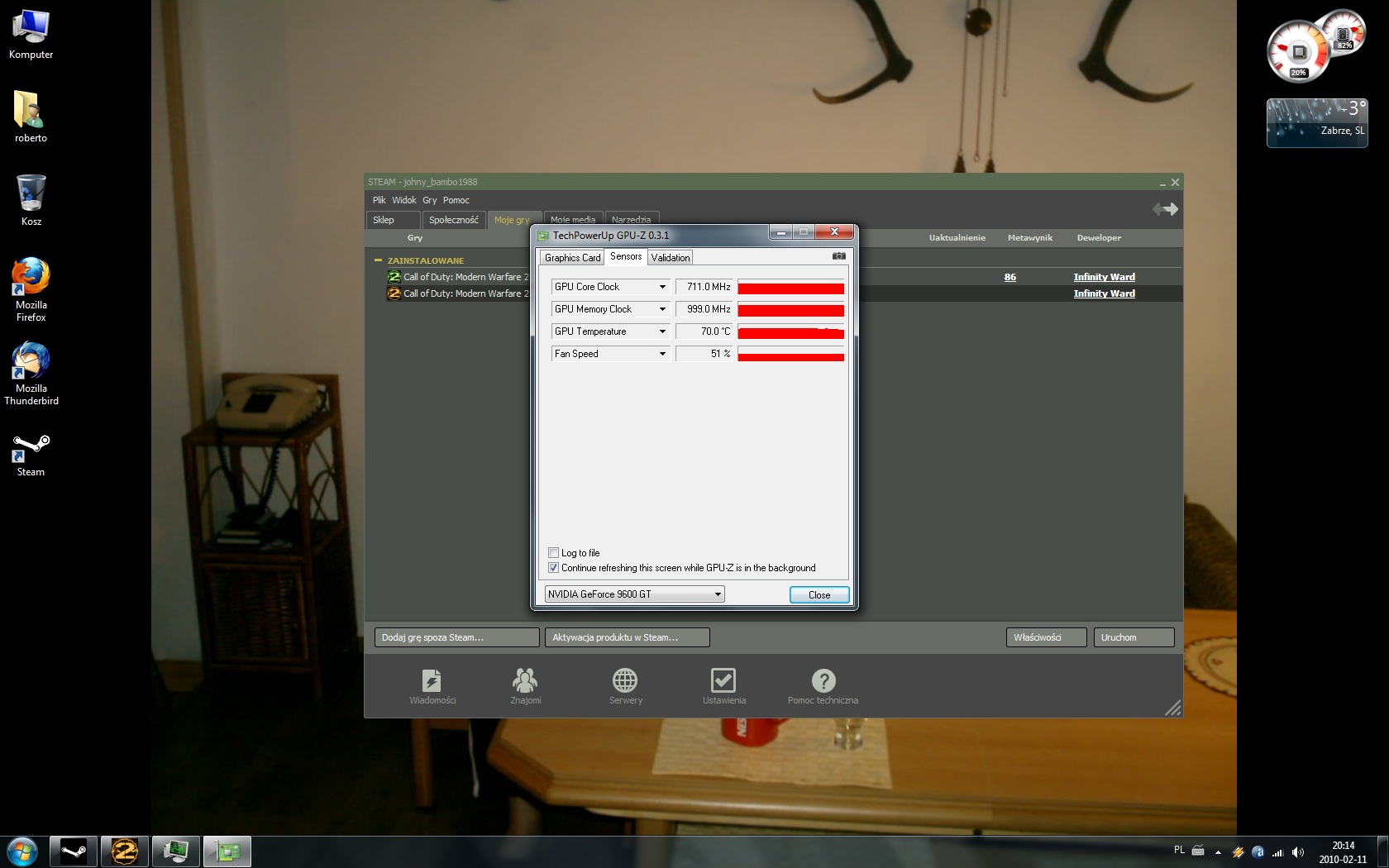 Drugie pytanie. Posiadam GF 9600GT 512 mb Palit, chyba, tak pisze na wiatraku ale nigdzie na internecie nie umiem znaleźć takiej wersji która ma 2xdvi. standardowo pracuje na 650/1800. udało mi się go podkręcić maksymalnie na 729/2014. W Dragon Age chodzi idealnie i mogę tak grać pół dnia i będzie git. Gdy gram w CoD Modern Warfare 2 to po godzinie, dwóch mam zwisa, dlatego muszę mu obniżyć taktowanie do 711/2008. Czy to już max karty ? czytałem po forach że ludzie uzyskują lepsze wyniki na tej karcie a ja mam tak mało, dodatkowo mając wentylator :/ Temperatura która jest na karcie podczas spoczynku to 55, w stresie 70, a było 45 w spoczynku i 64 w stresie ale założyłem kartę muzyczną do komputera i jest bezpośrednio pod grafiką i dlatego tak zwiększyła się temperatura. Dodatkowo powiedzcie czy shader ma iść równo z core czy można wyżej kręcić ? Pozdrawiam i dziękuję za wszelką pomoc