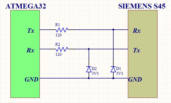 Podejrzewam że problem jest w różnicy napięć, może brakuje jakiegoś rezystora podciągającego? nie wiem. Procek pracuje przy 3,3V (w zasadzie 3,7 bo jest zasilany z baterii telefonu).