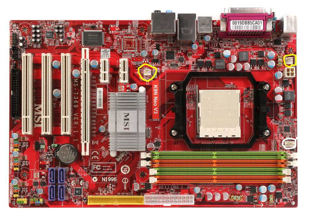 Na biało jest zaznaczone wejście na cooler który jest podpięty pod radiator.