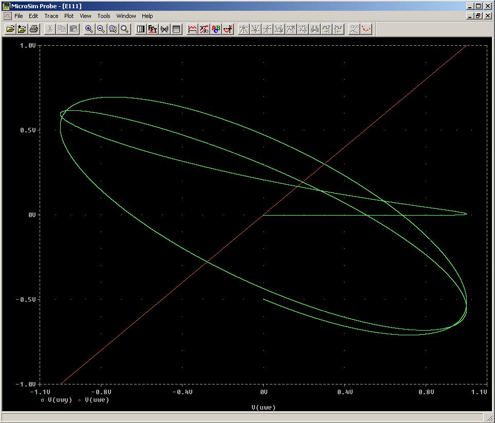 2. Ch-ka fazowa: w PROBE -->Trace-->Add-->Trace Expression wpisać wzór P(Uwy) w wyniku czego otrzymałem: