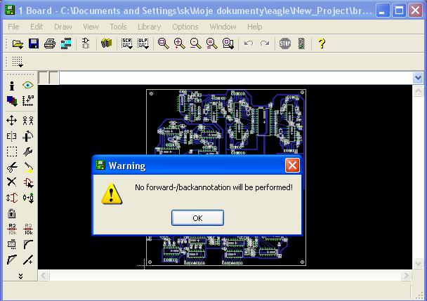 Witam. Jestem początkującym użytkownikiem programu Eagle. Zrobiłem sobie dość obszerną płytkę jednowarstwową w boardzie bez tworzenia schematu. Gdy próbuję otworzyć plik boardzie to wyskakuje min takie oto ostrzerzenie: