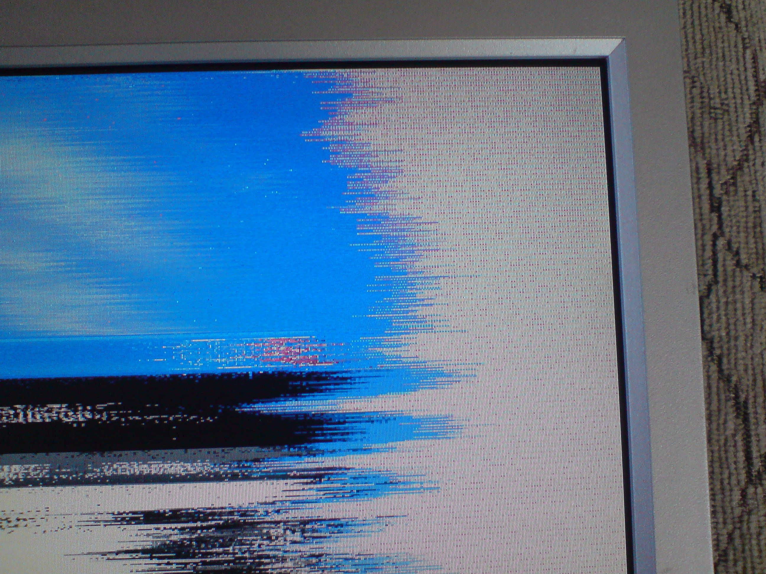 Witam wszystkich. Dostałem ten monitorek z dziwnymi efektami. Stawiam na cos z prockiem (chyba), a może to coś innego? Co proponujecie zrobić? Załączam fotki: