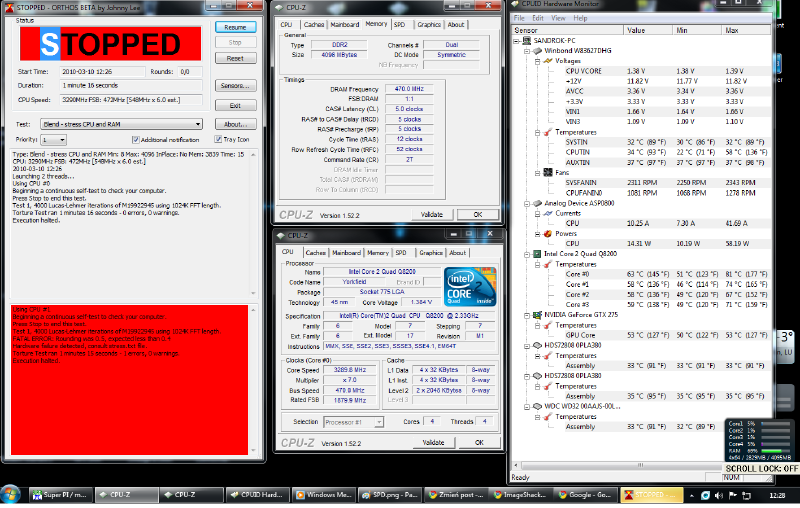 Tyle że po 2 min testu w ORTHOS wywala błąd i nie wiem za bardzo o co chodzi. W grach i normalnej pracy chodzi stabilnie. Testowałem na COD MW2 na Full ustawieniach. Gożej z temperaturą bo dochodziła do 80°C.