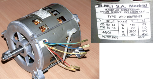 znajdź wspólny przewód, jedna para to są rewersy druga wirowanie dojdziesz po opornosciach--wirowanie ma mniejszą oporność. Nie zapomnij o podłączenie kondensatora rozruchu