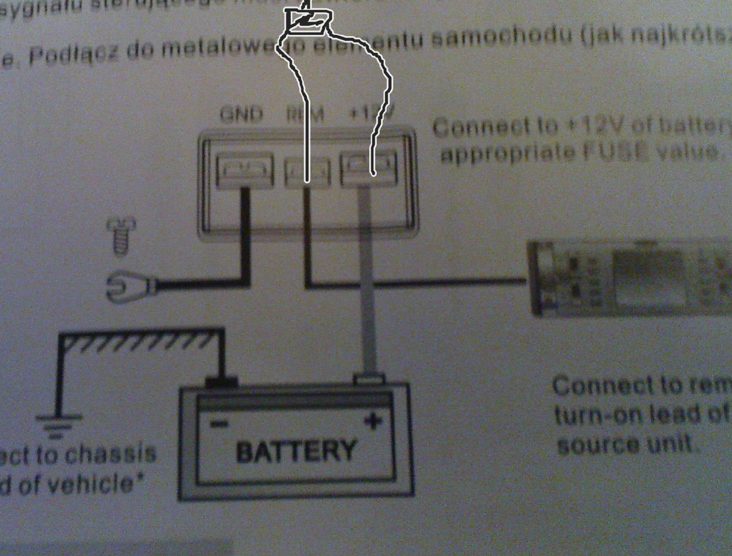 Przecież masz przewód remote (czyli ten załączający wzmacniacz przy włączeniu radia) - na tym 2 zdjęciu, jak byk napisane jest blue - power antenna, to właśnie jest remote.