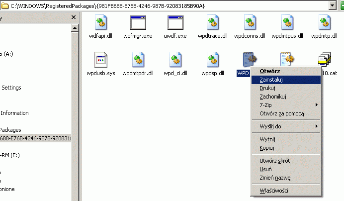 Pobieramy go wypakowujemy i klikamy prawym przyciskiem myszki na plik WPD10.inf i wybieramy zainstaluj. Gdy się zainstaluje system poprosi o zrestartowanie komputera klikamy na OK.