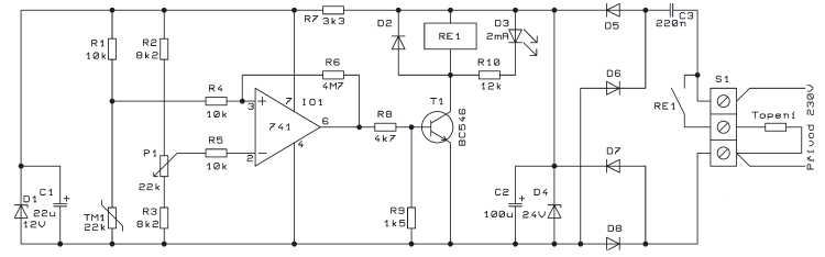Drugi potencjometr służy do ustalenia temperatury stabilizowanej. Należy przy tym pamiętać o histerezie układu co może być nieco trudne