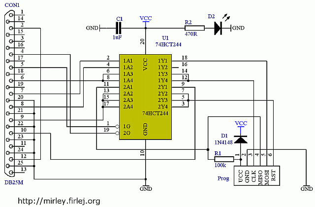 Wiem, że dioda LED nie ma wpływu na działanie układu - obędzie się bez niej. Jednak programator nawet bez diody, nie działa. Sprawdziłem go programikiem ISPtest, programator nawet nie dał znaku życia