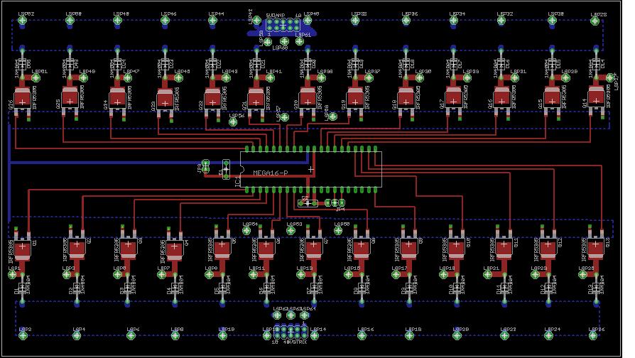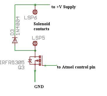 Głównym elementem tego instrumentu jest oczywiście wibrafon. Pod każdą z metalowych płytek umiejscowiono solenoidy, których rdzenie pod wpływem przepływającego impulsu przez cewki, uderzają w płytki. Sterowanie nimi początkowo miało być oparte na jednym mikroprocesorze ATmega16, jednak ze względu na problemy napotkane podczas projektowania oraz dużą liczbę układów, wymaganą do multipleksowania postanowiono wykorzystać trzy mikroprocesory - każdy na jedną oktawę. Wyjścia portów sterują bezpośrednio tranzystorami FET, które zapewniają impuls potrzebny do wprawienia części uderzającej w ruch (jak na schemacie):
