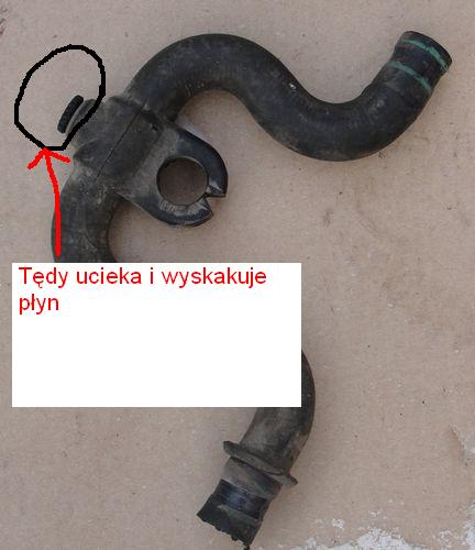 Witam . Pomóżcie mi bo na święta mam jechać a dziś zauważyłem że mi kapie i wycieka tym zaworem na rysunku co zakreśliłem płyn do chłodnicy a jak odkręcę korek to słychać jak wychodzi powietrze i przestaje kapać co robić ?