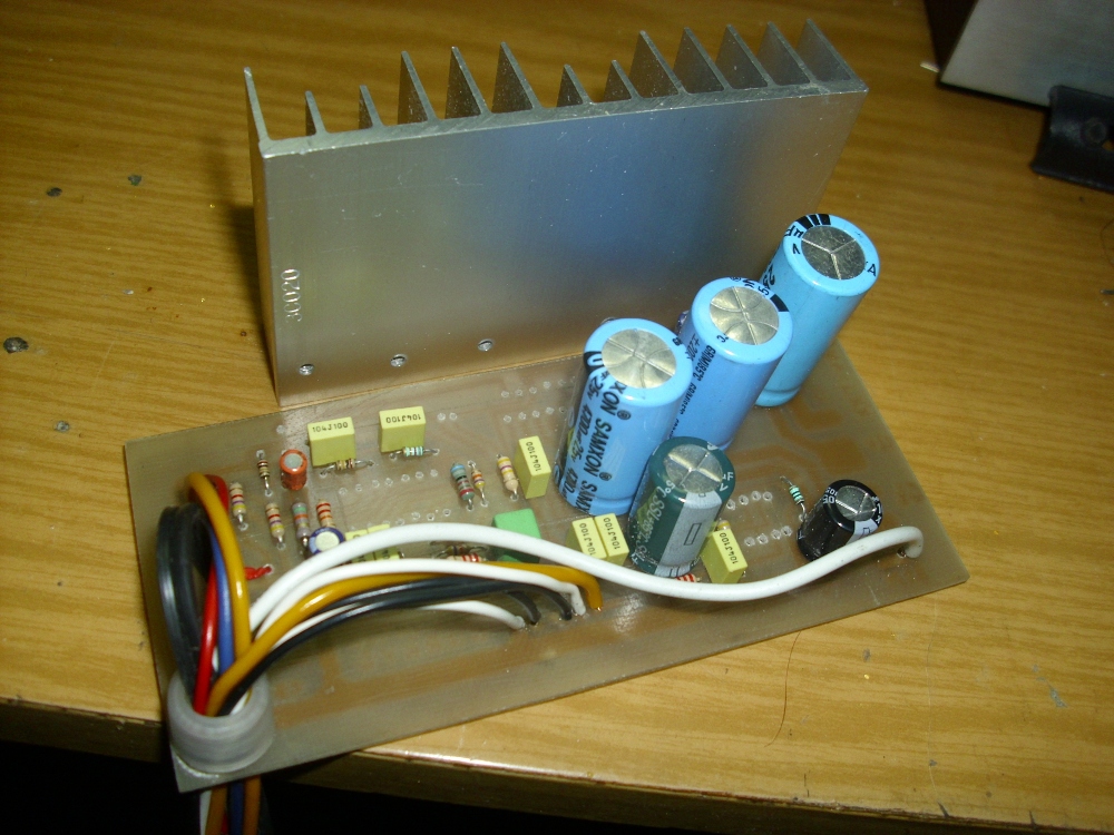 Skrzynka w trakcie prac oraz wzmacniacz.