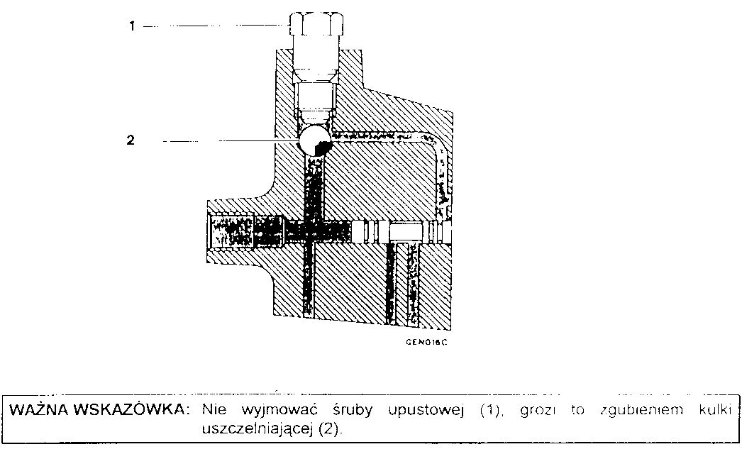 Wyciek występował wyłącznie przy włączonym silniku.Po sprawdzeniu na kanale okazało się że płyn cieknie spod śruby umieszczonej nieco na prawo (patrząc od spodu) od sfery konżektorowej. Po wykręceniu śruby okazało się, uszczelniona jest ona dwoma małymi oringami, na końcu śruby jest gniazdo dla małej kulki z tworzywa sztucznego. Oringi na śrubie były wyszczerbione, więc je wymieniłem. Kulka włożona w otwór, śruba wkręcona do oporu, tak jak była wcześniej.