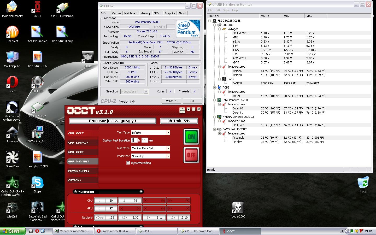 Właśnie sprawdzałem temp. procesora i okazała się ona być bardzo wysoka. po niespełna 3 minutach testu OCCT test został przerwany. Dziwne jest też to, że temperatura, procesora w spoczynku wynosi powyżej 60 stopni.