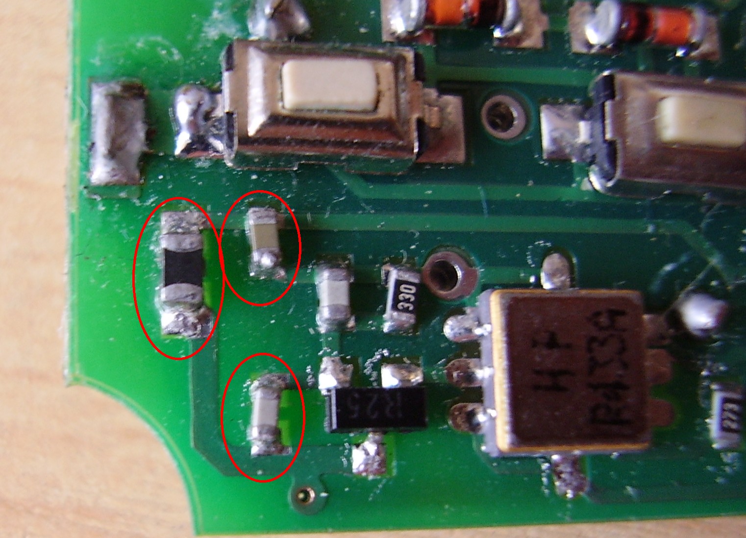 Witam. Mam założony najprostszy c. zamek carprotect, do zestawu były 2 piloty typu "scyzoryk". Jeden z nich postanowiłem poświęcić i płytkę przełożyć do innego pilota. Niestety, płytka była złych wymiarów więc trzeba było przeorganizować elementy. Teraz, po wciśnięciu przycisku zapala się dioda na płytce, ale zamek nie reaguje. Pilot był sprawny, zamek jest sprawny, bo drugi "nie ruszany pilot" działa. Prawdopodobnie uszkodziłem przy przelutowywaniu 3 elementy smd. Jeden wygląda na rezystor, dwa na kondensatory ale pewności żadnej. Nie ma żadnych oznaczeń na elementach. Załączam zdjęcia płytki sprawnego pilota z zaznaczeniem uszkodzonych elementów w drugim pilocie. Prosiłbym o sugestie, co można z tym zrobić. Pozdrawiam.