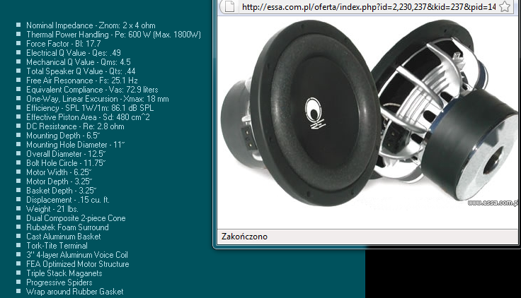 Nie, dziękuję Przekieruj mnie tamTulio20 napisał:Może guma jest lepsza może nie, tego nie wiem. Napisałem tylko że ja jestem do niej bardziej przekonany, bo widziałem w akcji kilka głośniczków miło grających właśnie na gumie. Ale masz racje nie jest tak że guma jest ok a pianka be.