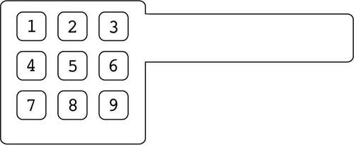 Kiedy mamy zebrane już wszystkie potrzebne materiały należy przystąpić do zaprojektowania wyglądu oraz układu klawiatury. Z pomocą przyjdzie tutaj dowolne środowisko graficzne, w którym czujesz się komfortowo (np. Paint, Photoshop, Ilustrator). W tym projekcie użyto dziewięciu przycisków, z numerami od 1 do 9. Gdy już zadecydujesz jak ma wyglądać część czołowa klawiatury nie zapomnij aby wydzielić miejsce na przewody.